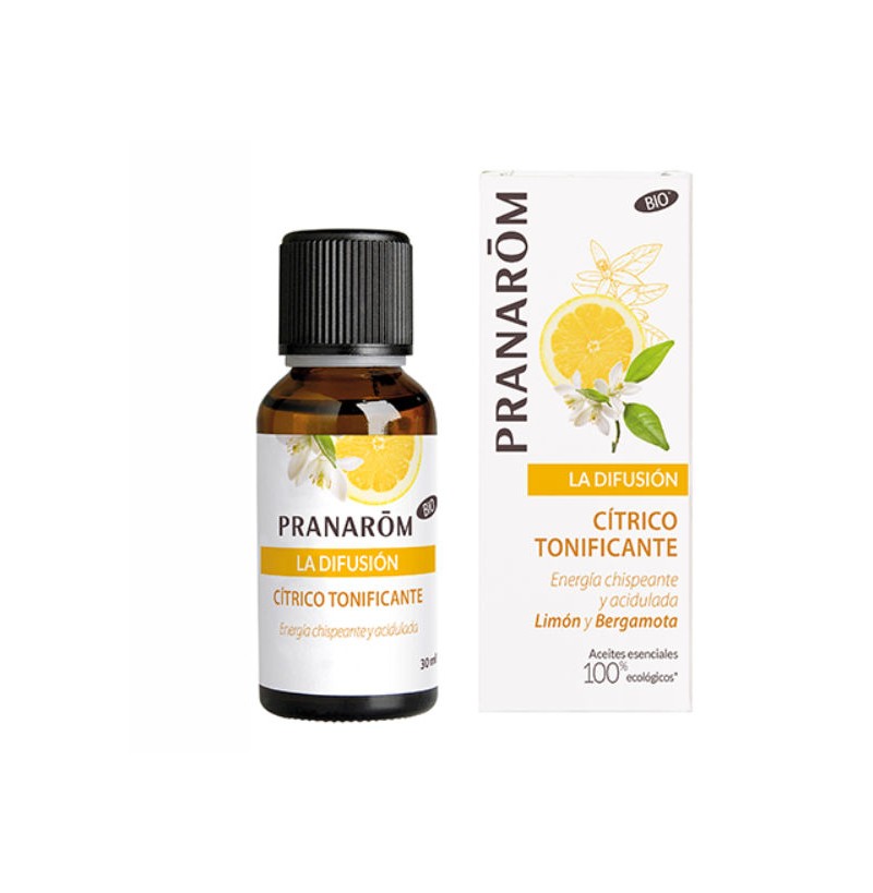Aceite esencial cítrico, sinergia de limón y bergamota. Esta mezcla de pranarom de aceites esenciales es perfecta para crear un ambiente de energía y alegría en el hogar o lugar de trabajo.