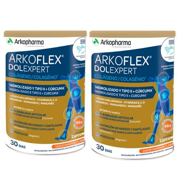Arkoflex Dolexpert es el colágeno con cúrcuma en polvo ideal para tomar en periodos de dolores musculares y de huesos.