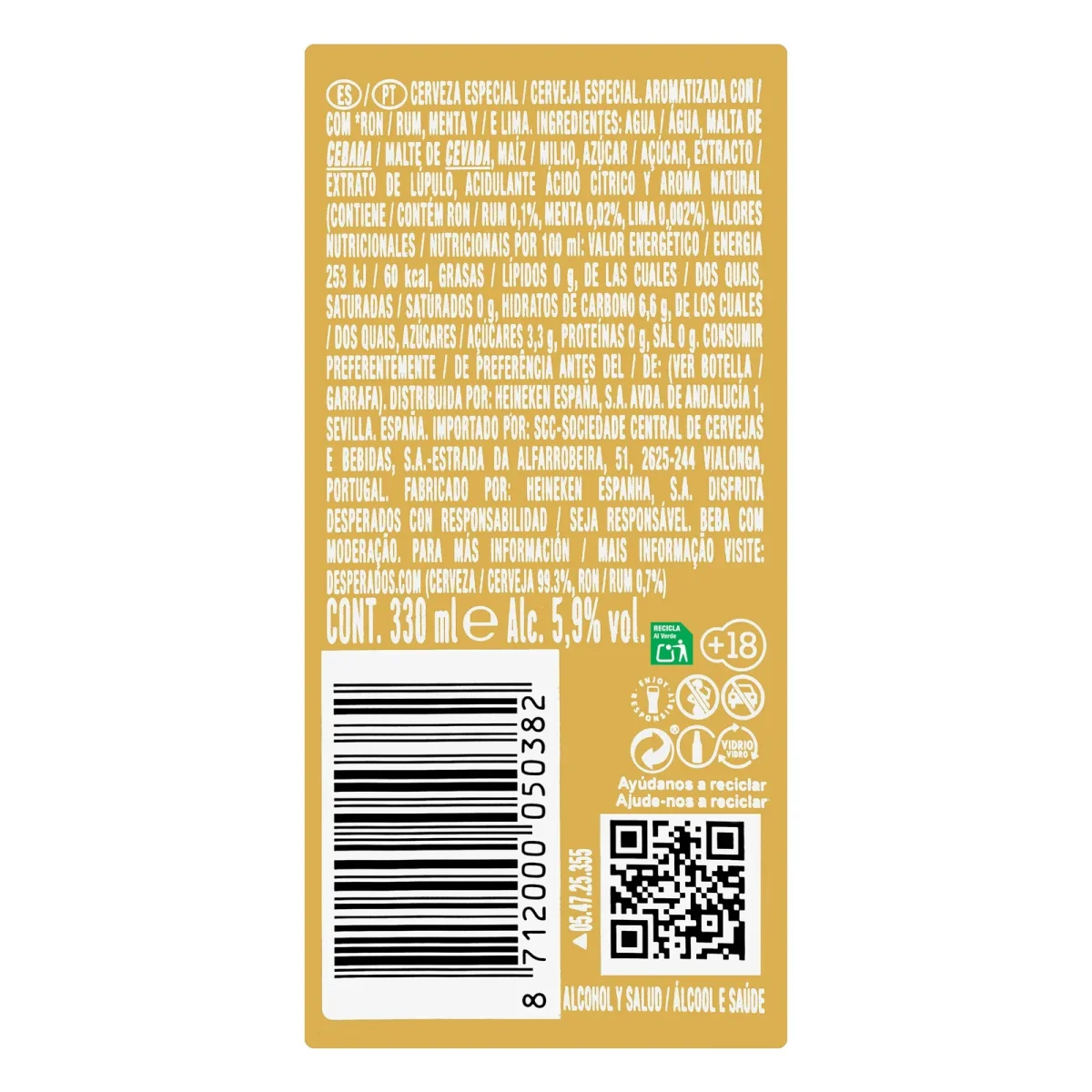Descubre Cerveza con sabor a tequila y mojito Desperados, una excelente opción dentro de la categoría Cervezas de España. Producido en España, este producto ofrece un sabor característico que evoca la tradición y calidad de la gastronomía española. Perfecto para quienes viven en Europa y desean disfrutar de un auténtico producto español, ya sea para acompañar comidas, celebrar ocasiones especiales o regalar a los amantes de los sabores únicos de España.