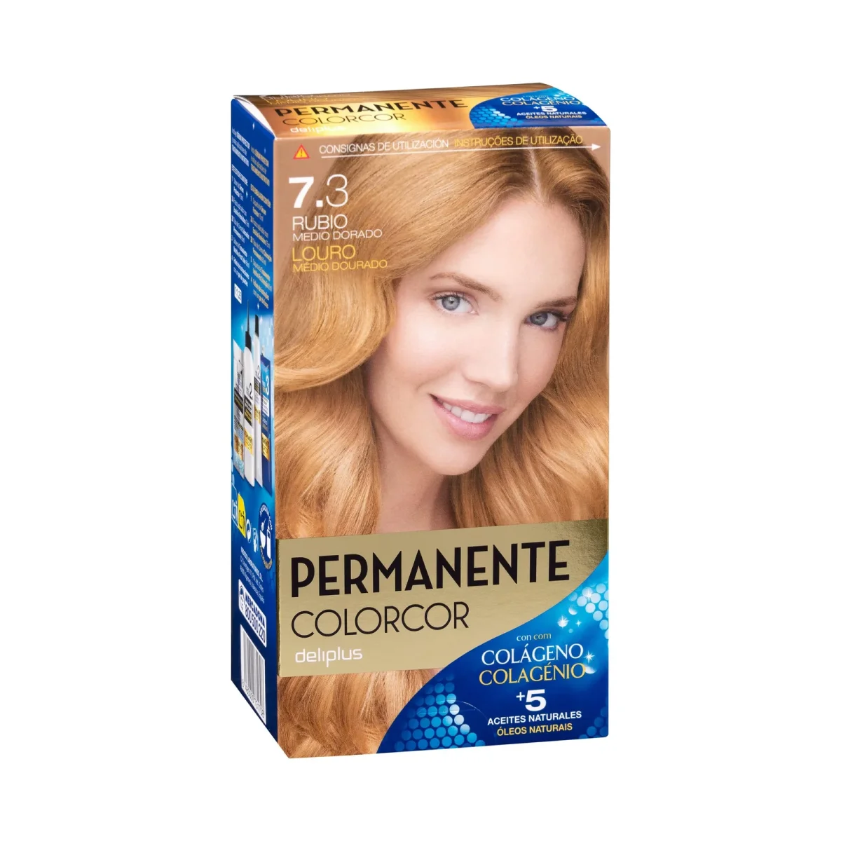 Coloración permanente 7.3 rubio medio dorado Deliplus para el cuidado diario.