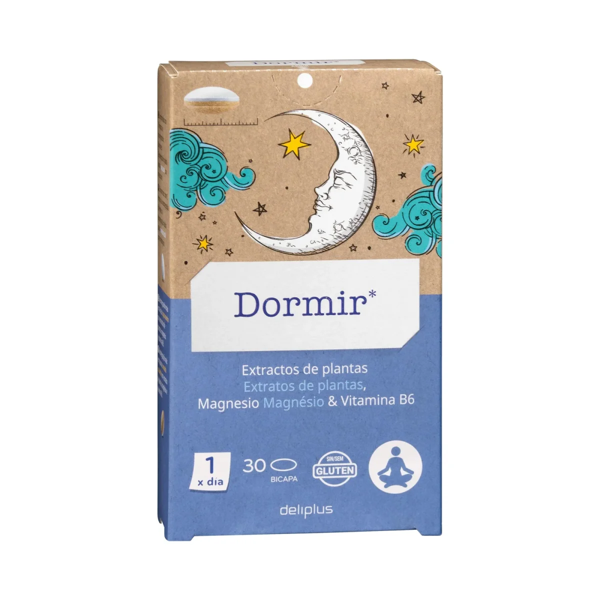 Comprimidos Dormir Deliplus, un producto típico disponible en España. Pertenece a la variedad de fitoterapia. Ideal para españoles que viven fuera de Europa y quieren seguir cuidándose con productos que conocen, y para europeos que buscan referencias auténticas del mercado español.