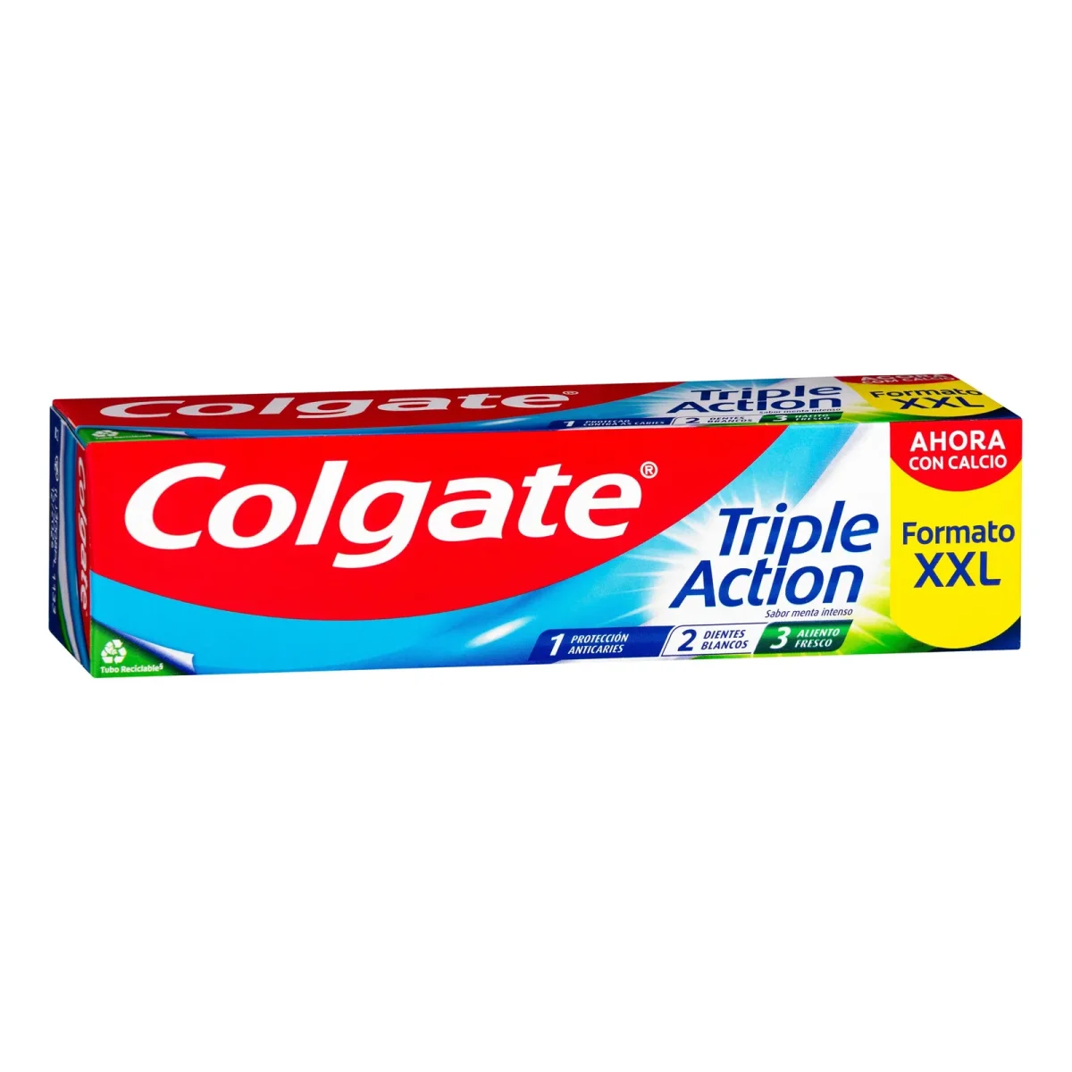 Dentífrico Triple Acción Colgate menta intensa para el cuidado diario.