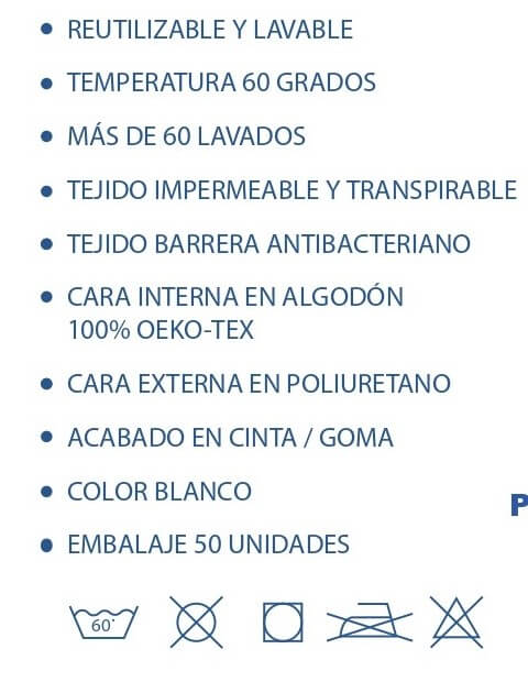 - Mascarilla sanitaria de tejido impermeable y transpirable.
