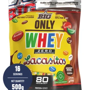 Descubre la nueva ONLY WHEY ZERO Take Away sabor Lacasitos de BIG. Una proteína de suero de alta calidad, baja en azúcares y grasas, perfecta para disfrutar en cualquier momento y lugar. Con el autntico sabor Lacasitos, esta edicin especial te transporta a los sabor icnicos de Espaa, aportando todo lo que necesitas para apoyar tu rendimiento deportivo y recuperacin muscular. Su formato Take Away te permite llevarla cmodamente y prepararla al instante, ideal para quienes buscan nutricin de calidad sin renunciar al sabor. Cada dosis aporta protenas de alto valor biolgico, ayudando a mantener y desarrollar la masa muscular, mientras disfrutas de un sabor irresistible.