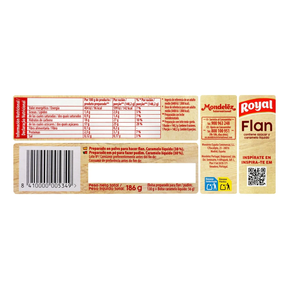 Preparado en polvo flan Royal. Levaduras y preparados para bizcochos y masas. Pensado para repostería casera y recetas del día a día. Formato aproximado: 0.186 kg. Apto para clientes en Europa que buscan sabores y formatos habituales en España.