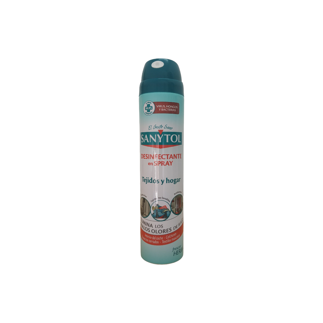 - Los aerosoles SANYTOL cumplen con los estándares de eficacia de la Unión Europea. Garantizan una desinfección completa sobre: