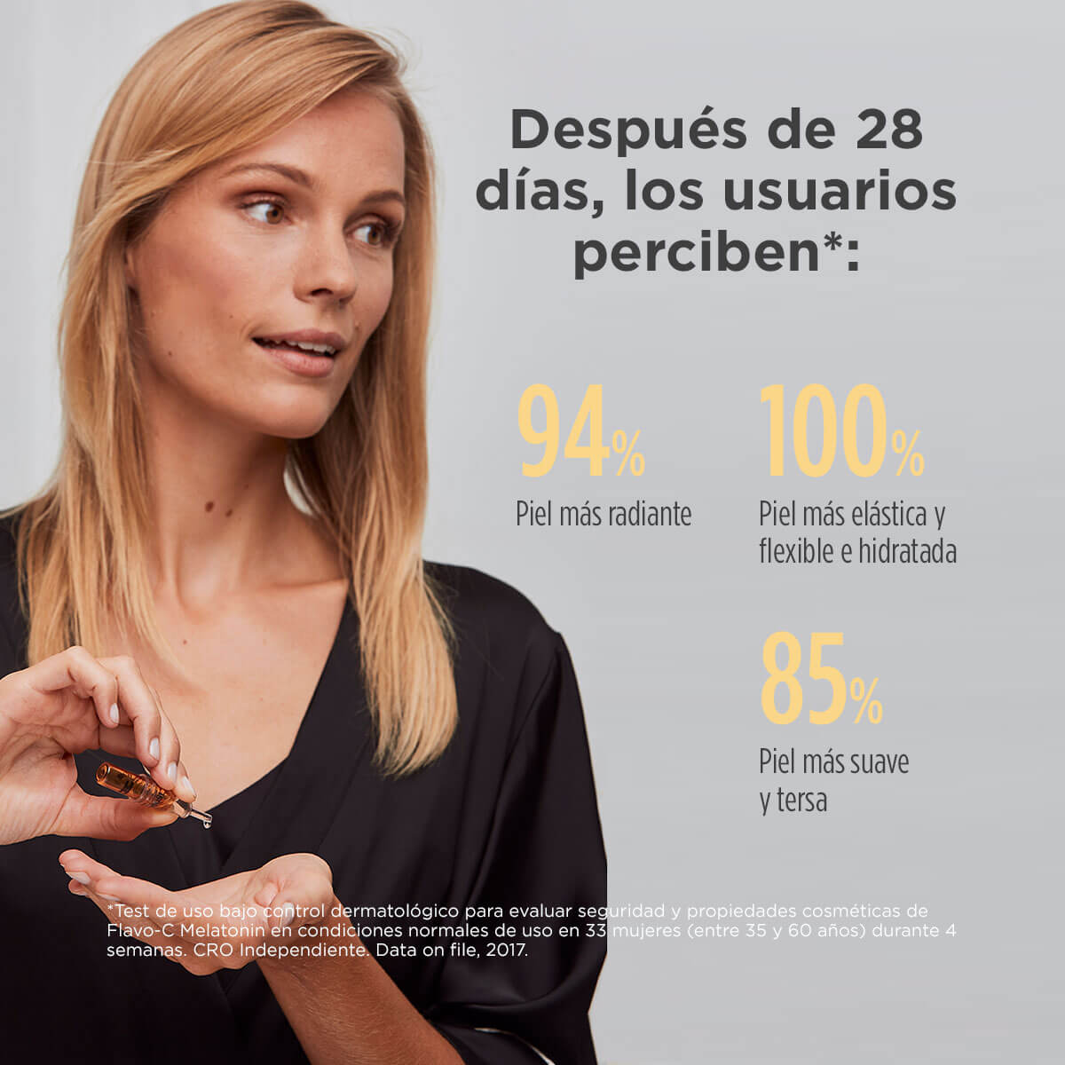 Aplica Sérum flavoC melatonin por la noche evitando el contorno de ojos.