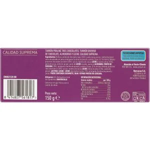 El turrón tres chocolates praliné de la marca CONSUM es una delicia tradicional elaborada con ingredientes seleccionados y el cuidado artesanal que caracteriza a los mejores turrones de España. Su textura suave y su sabor equilibrado evocan la esencia de la Navidad mediterránea, perfecta para compartir o regalar. Ideal para quienes buscan un auténtico producto español con envío disponible a toda Europa en formato de 0.15 kg. Disfruta de un bocado dulce que combina historia, tradición y calidad premium.